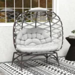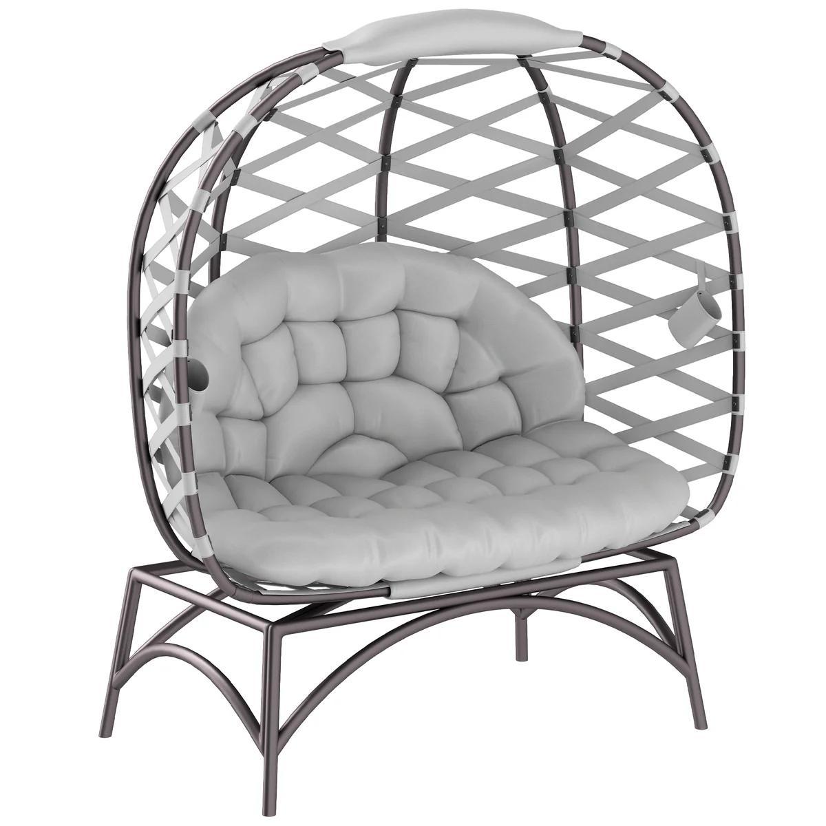This two-seater egg chair brings you and company together in comfort – and style. It comes in a large egg chair shape, fitted with a large padded cushion to keep you comfortable. A powder coated steel frame means a strong and supportive structure, with the cross weaves adding subtle style. Two side pockets offer handy storage for small items, right next to you.