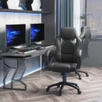 - Comfortable: Filled with sponge padding. High back and headrest for support. Gaming chair wrapped in smooth faux leather upholstery.